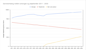 En prognose, som PLF har fået lavet ud fra data fra tilsynet, viser, at hvis der ikke sker en ændring i kommunernes behandling af plejefamilier, vil der om bare 10 år mangle plads til 2.500 børn. Dermed vil 2.500 børn komme på institution i stedet for at få mulighed for at være i plejefamilie.