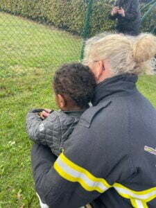 Mens kagen blev indtaget, kunne lyden af brandbil høres og det bragte også glæde og alle børn skulle ud og se den røde bil og holde vandslangen.